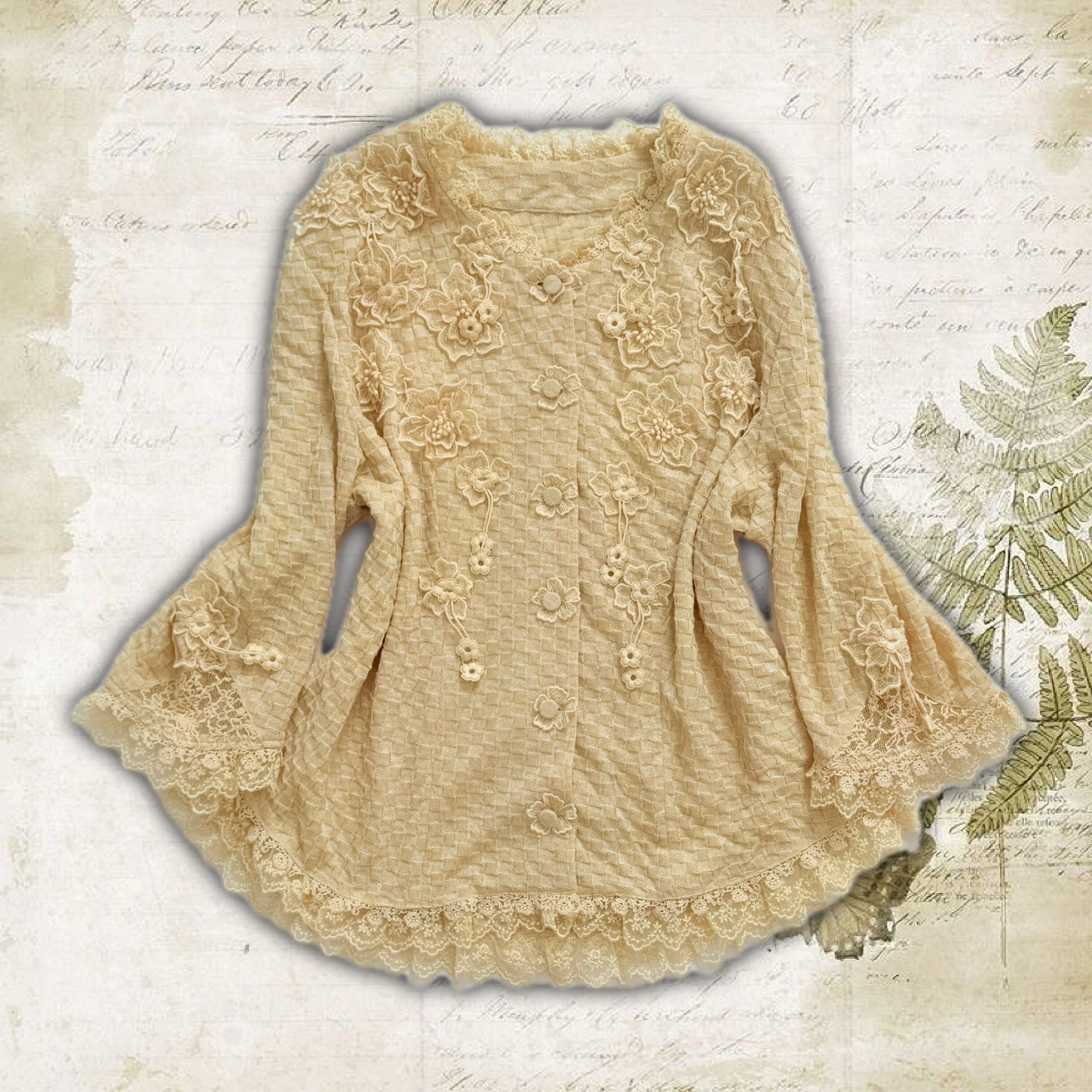 日本製ヴィンテージブランド*総柄レーストップス