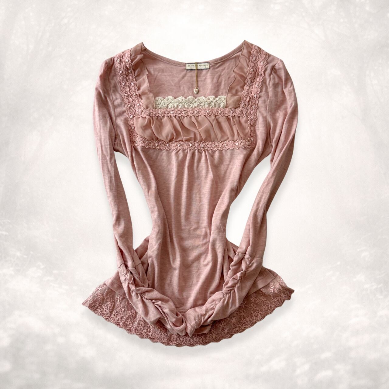 希少 fairycore coquette 姫カジ ピンクくしゅ♡袖ロンt