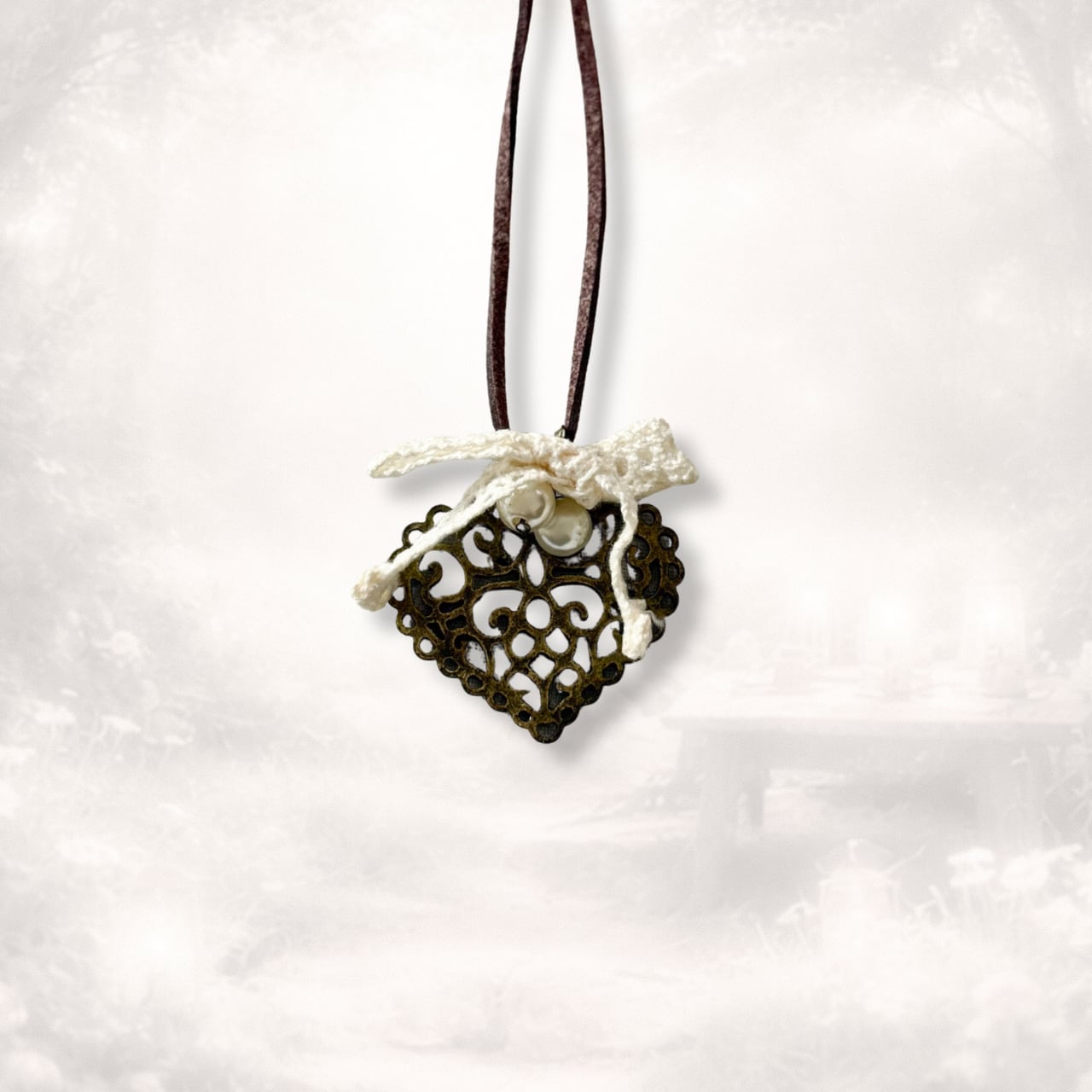 fairy grunge 森ガール 透かしハート レースパール ネックレス