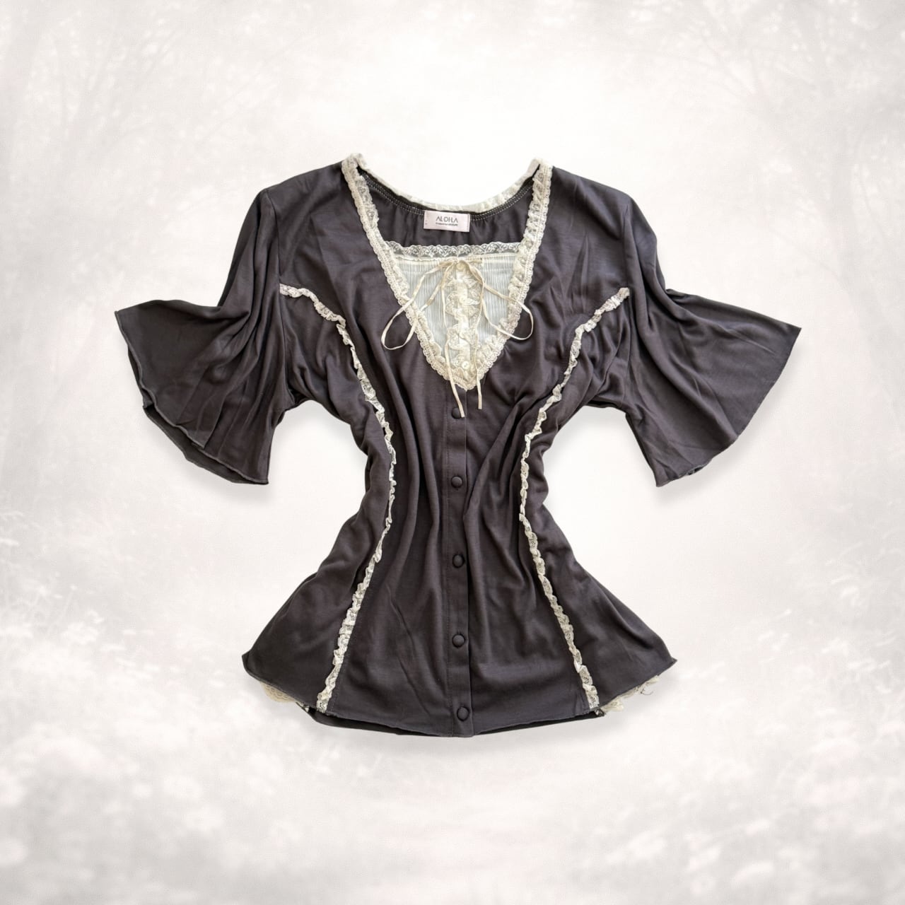 ゆるくて可愛い、ブラウンレースリボントップス。