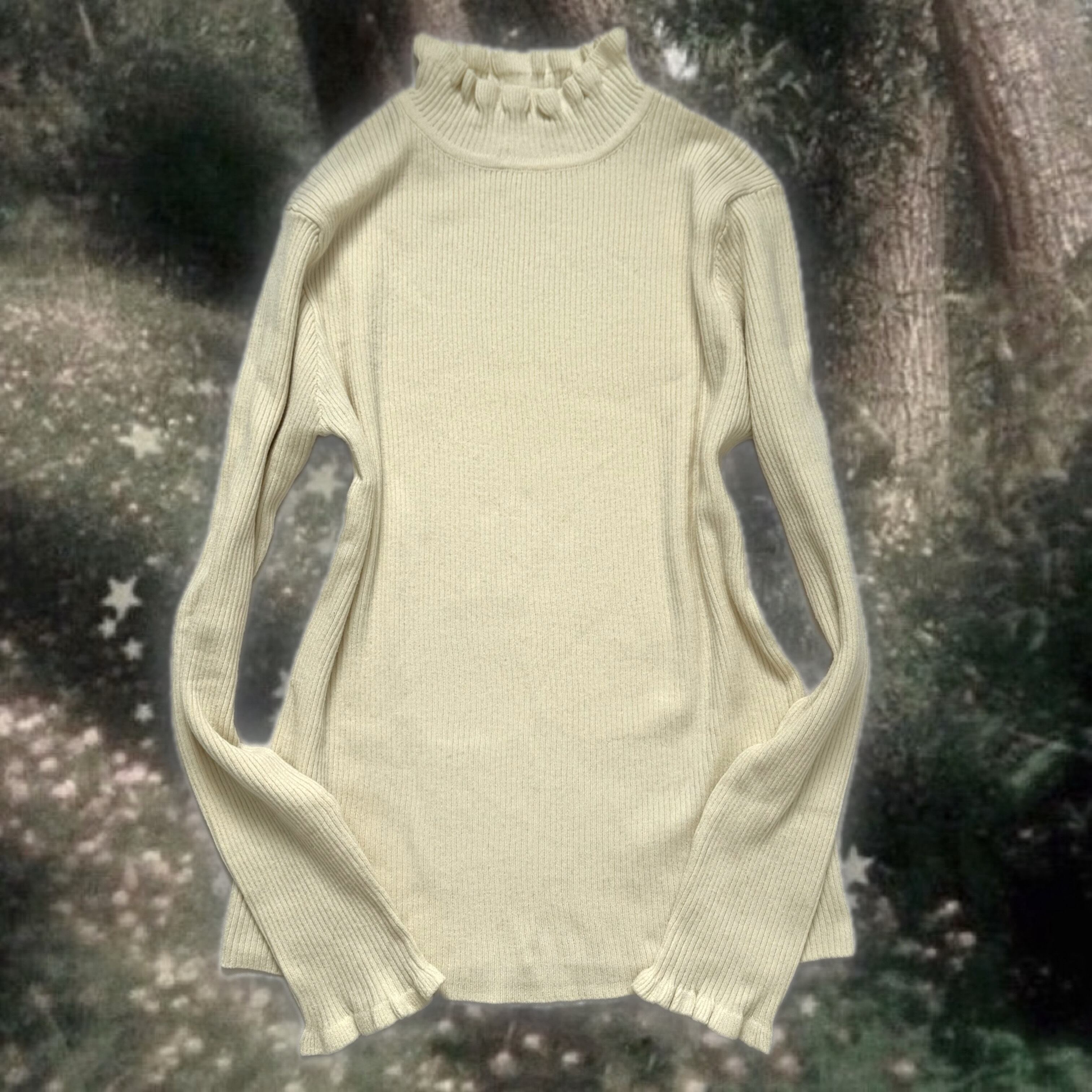 少し毛玉あり。首元や袖にフリルがありインナーにも使えます。